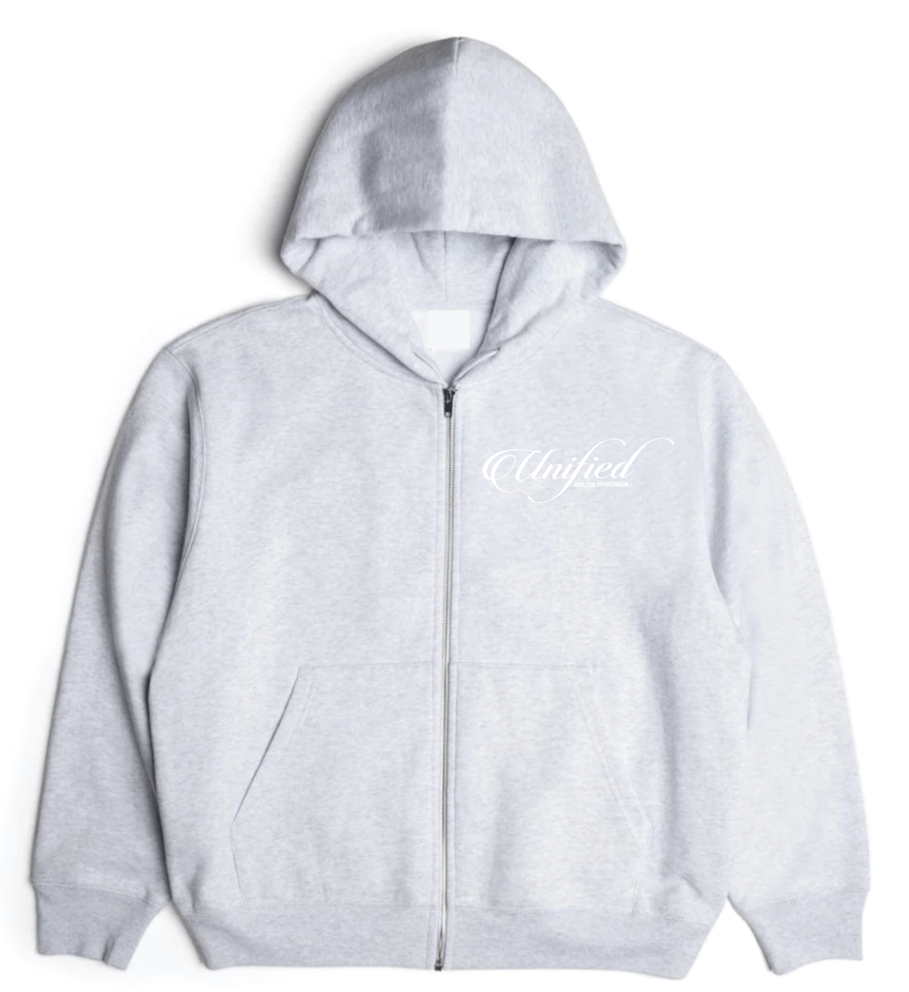 Grey 60% Cotton, 40% Polyester fleece zip-hoodie